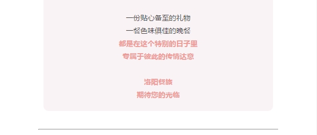 亲昵耳语,细述爱意 浪漫双人餐为你诠释幸福味道 发布时间:2018-02-13来源:点击:2457 洛阳餐旅 宴会专家全国预订客服热线:400-616-3939微信号:hacyly股票代码:836977长按二维码识别后添加关注以上信息来源于洛阳餐旅集团官网:www.athena-online.com 分享到:0 用手机看 拍下二维码,信息随身看 试试用微信扫一扫,在你手机上继续观看此页面。 上一篇:洛阳市餐饮与饭店行业协会2018新年盛典隆重举行 下一篇:春节不回家,只为守护更多的团聚和幸福!