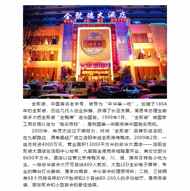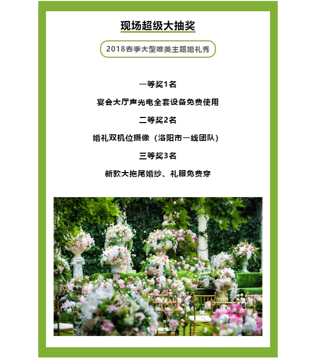 2018全聚德大酒店春季唯美主题婚礼秀 发布时间:2018-03-12来源:点击:2912 洛阳餐旅 宴会专家全国预订客服热线:400-616-3939微信号:hacyly股票代码:836977长按二维码识别后添加关注以上信息来源于洛阳餐旅集团官网:www.athena-online.com 分享到:0 用手机看 拍下二维码,信息随身看 试试用微信扫一扫,在你手机上继续观看此页面。 上一篇:洛阳餐旅集团旗下各店2018年4月-7月可预订宴会日期一览表(3.12更新) 下一篇:洛阳餐旅第九期“一情二用心”活动总结表彰大会隆重举行