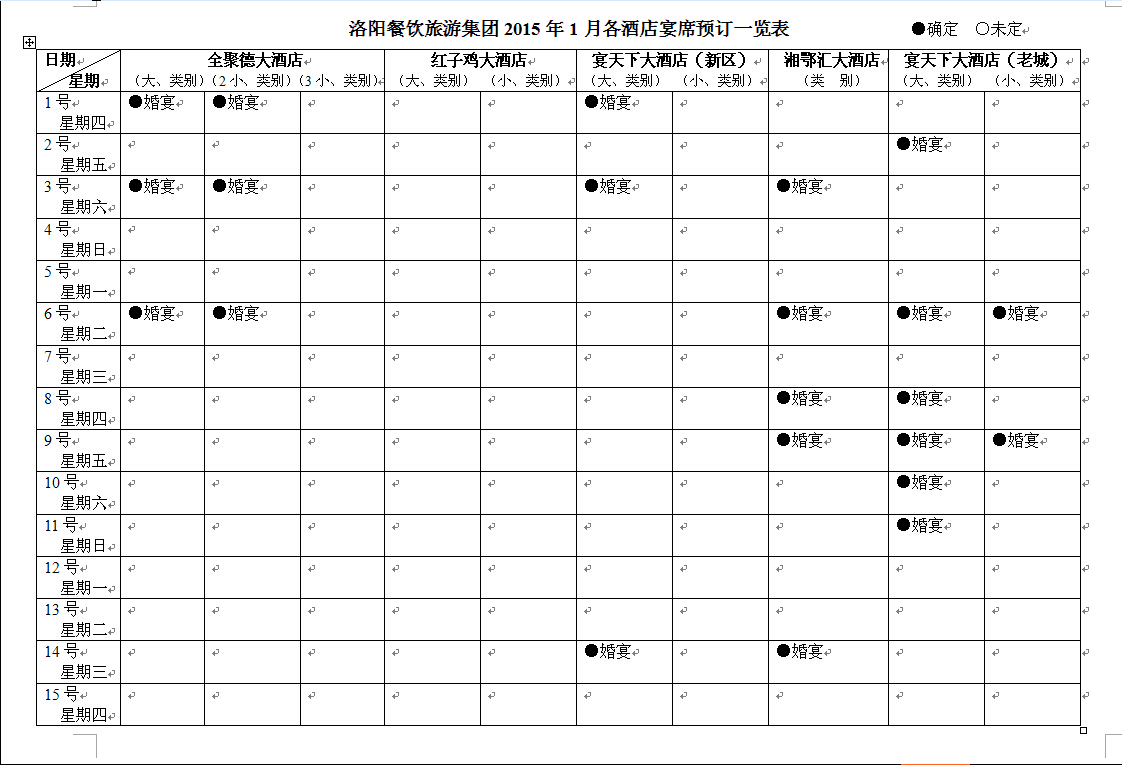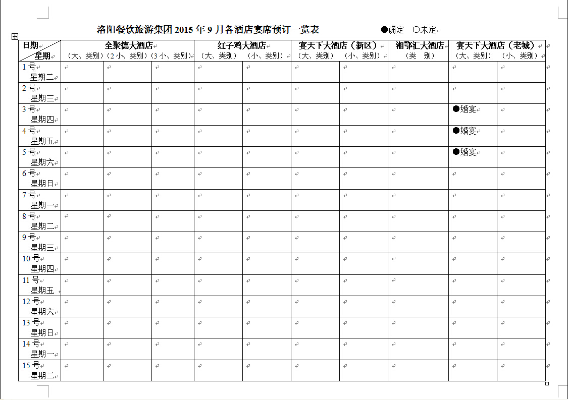 洛阳餐饮旅游集团2015年1月-12月各酒店宴席预定一览表 发布时间:2014-06-09来源:点击:2091 分享到:0 用手机看 拍下二维码,信息随身看 试试用微信扫一扫,在你手机上继续观看此页面。 上一篇:集团公司会员卡六月上线入会即享多项好礼 下一篇:董事长申灵杰当选清华大学洛阳企业家同学会常务副主席