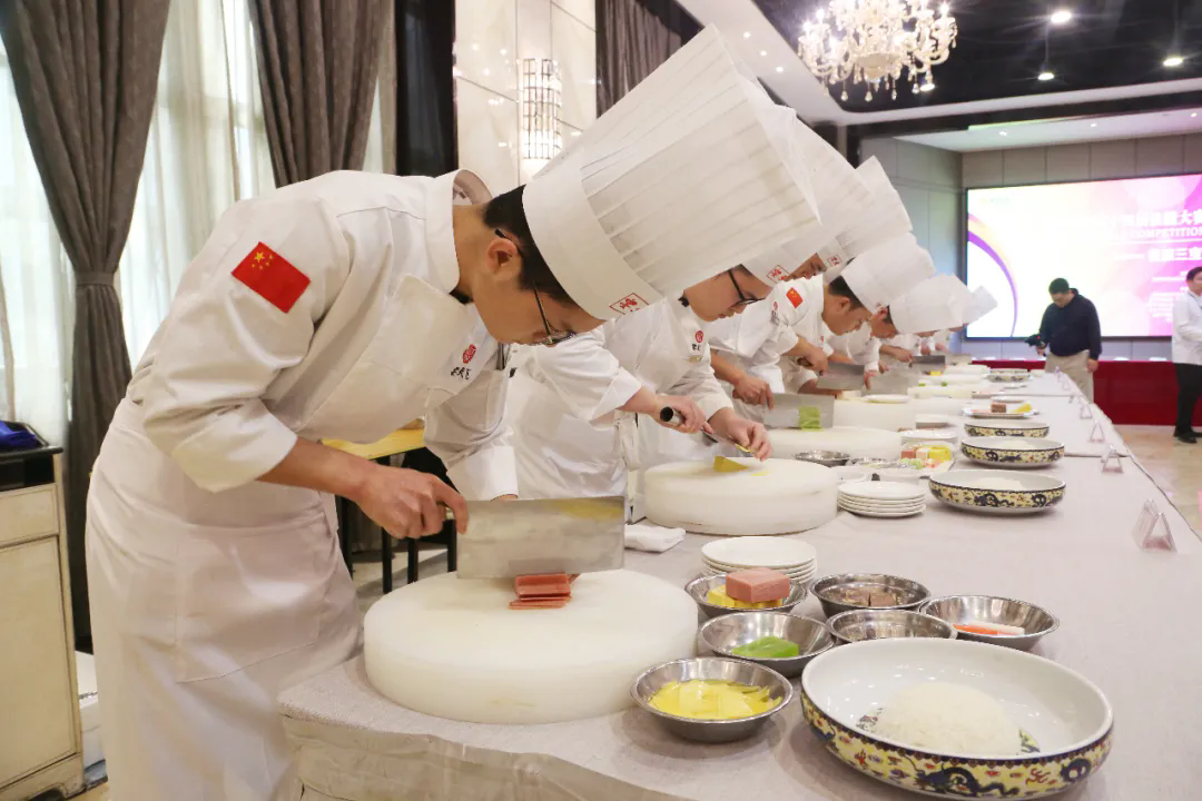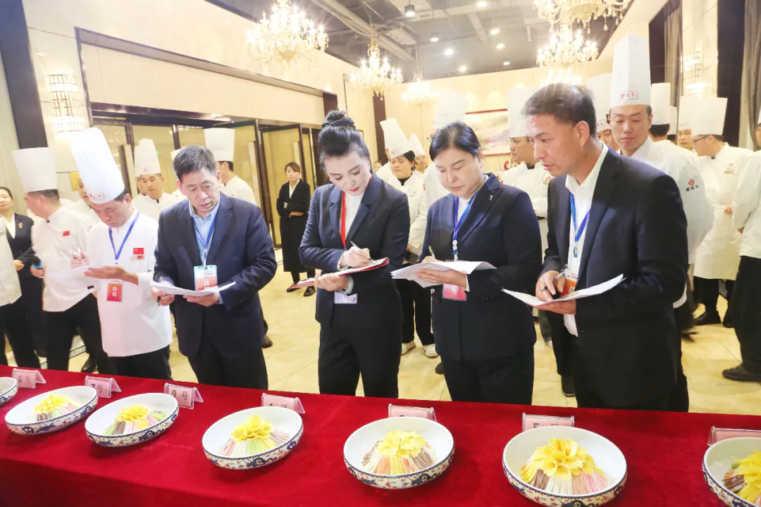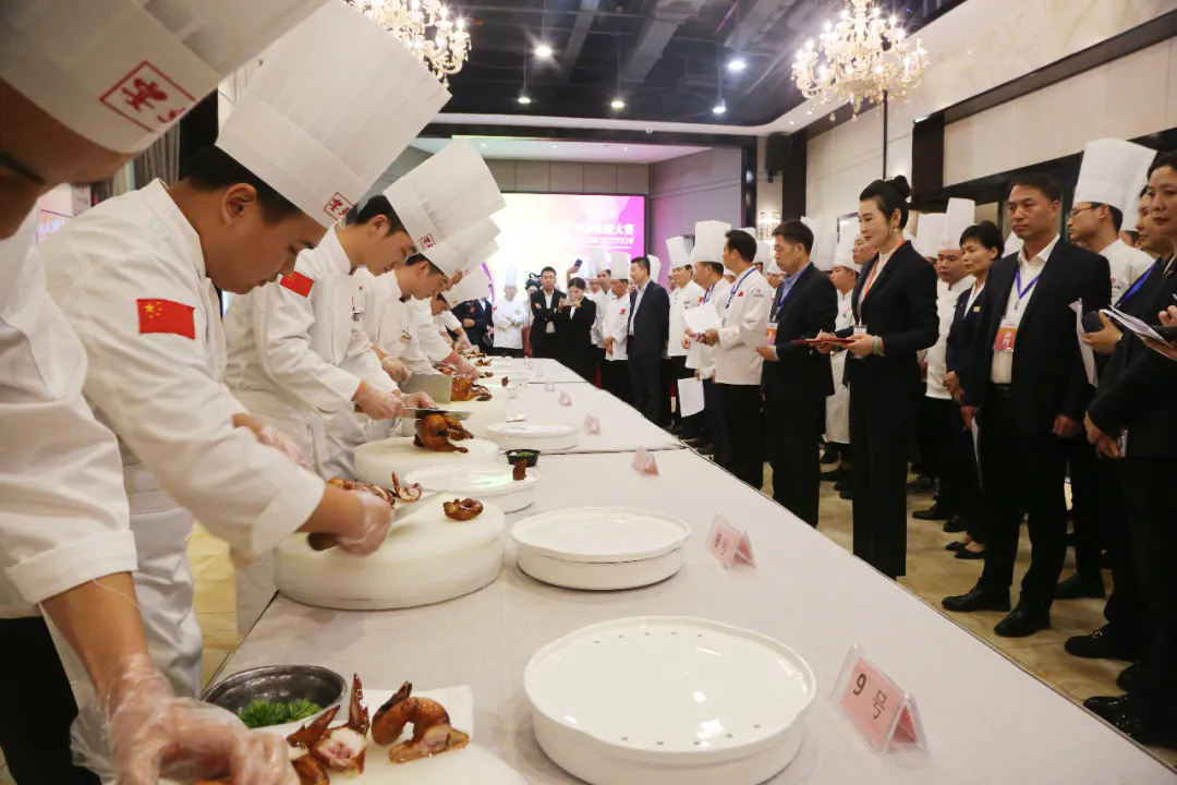 在19日的比赛中,分别进行了T台形象展示、备餐技能展示、餐旅三宝厨艺展示,来自各店的参赛者身着职业装,自信登场,展现职业技能。在“餐旅三宝”(烤鸭、水席、红子鸡)的现场制作,评委依据菜品的外观、色泽、摆盘、口感、刀法技能、操作姿势等方面进行评分。